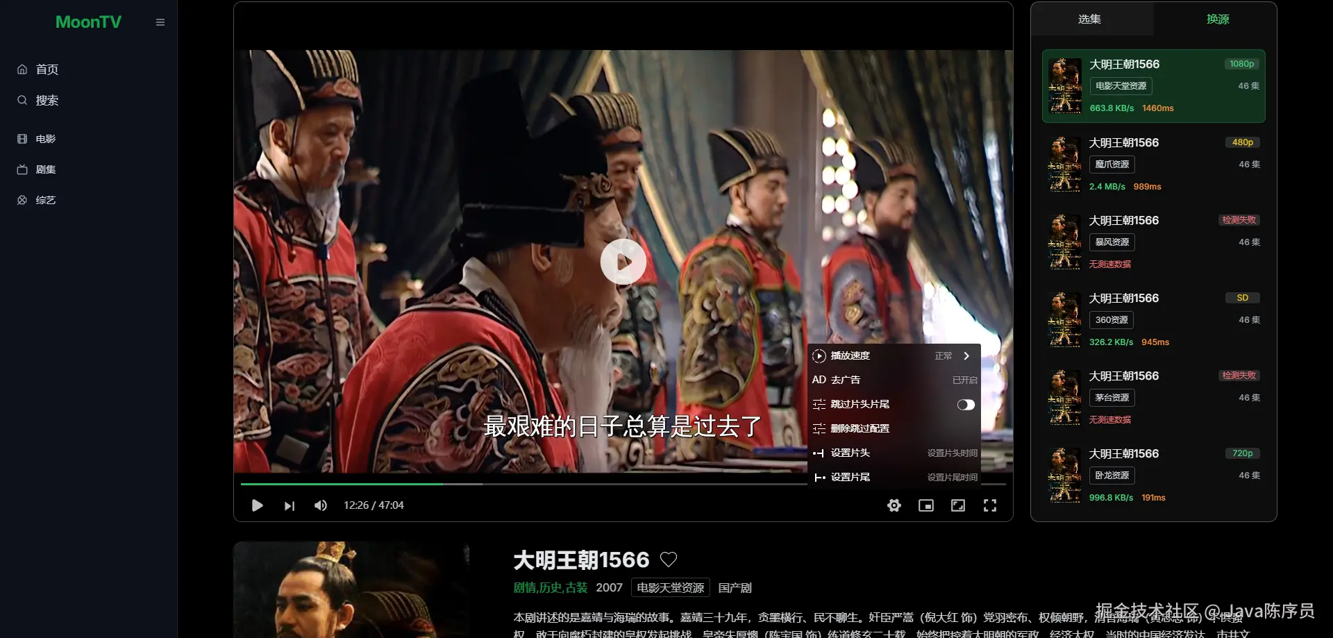 MoonTV —— 一个基于 Next.js 构建、开箱即用的、跨平台的影视聚合播放器。支持多资源搜索、在线播放、收藏同步、播放记录、本地/云端存储,让你可以随时随地畅享海量免费影视内容。
