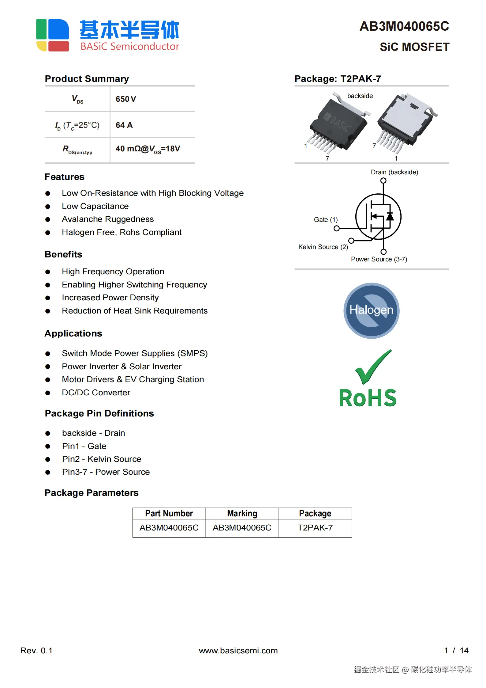 低寄生参数:Kelvin Source引脚(Pin2)减少开关环路电感,优化高频性能。