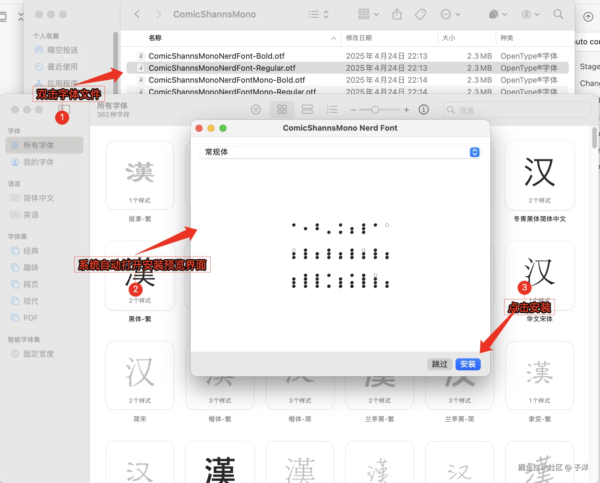 下载之后,打开字体文件夹,找到 .ttf 或 .otf 的字体文件,双击安装即可。你可以只安装其中一两个,也可以一次性把整套字体都装上。