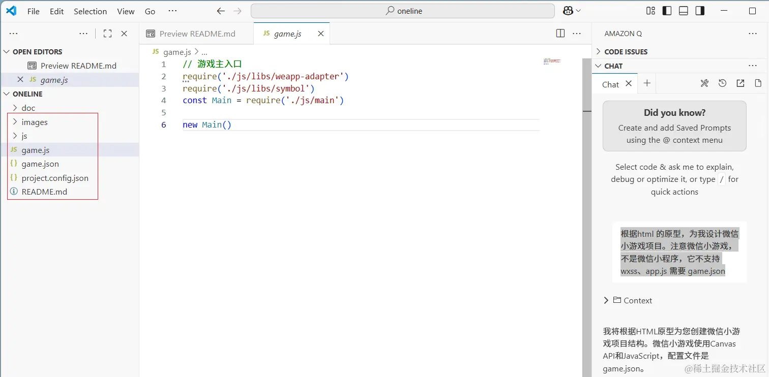 为了让大家有所见即所得的体验感,这里先让 AI 根据原型图,创建一个 微信小游戏 项目: