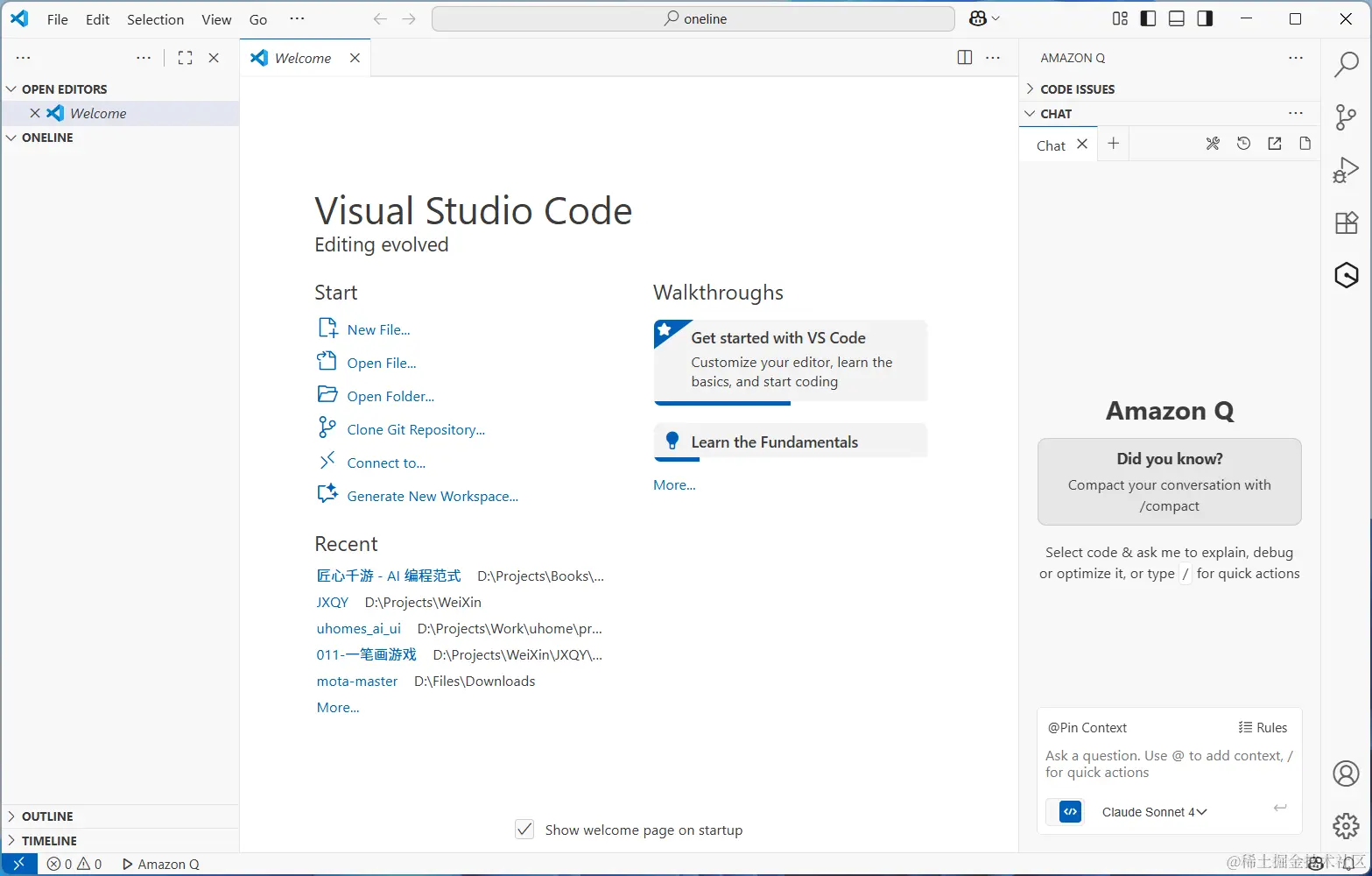 关于 AI 代码编辑器,现在市面上有很多,比如 Trae、Cursor、Kiro、Claude Code等。它们都有一定的免费试用额度,但一般都不够支持完整开发一个项目。所以我也没有全部试过,也就不贸然推荐。只要你能找到一款能编写代码的 IDE 就行了,是在找不到,也可以用 通义灵码 试试。