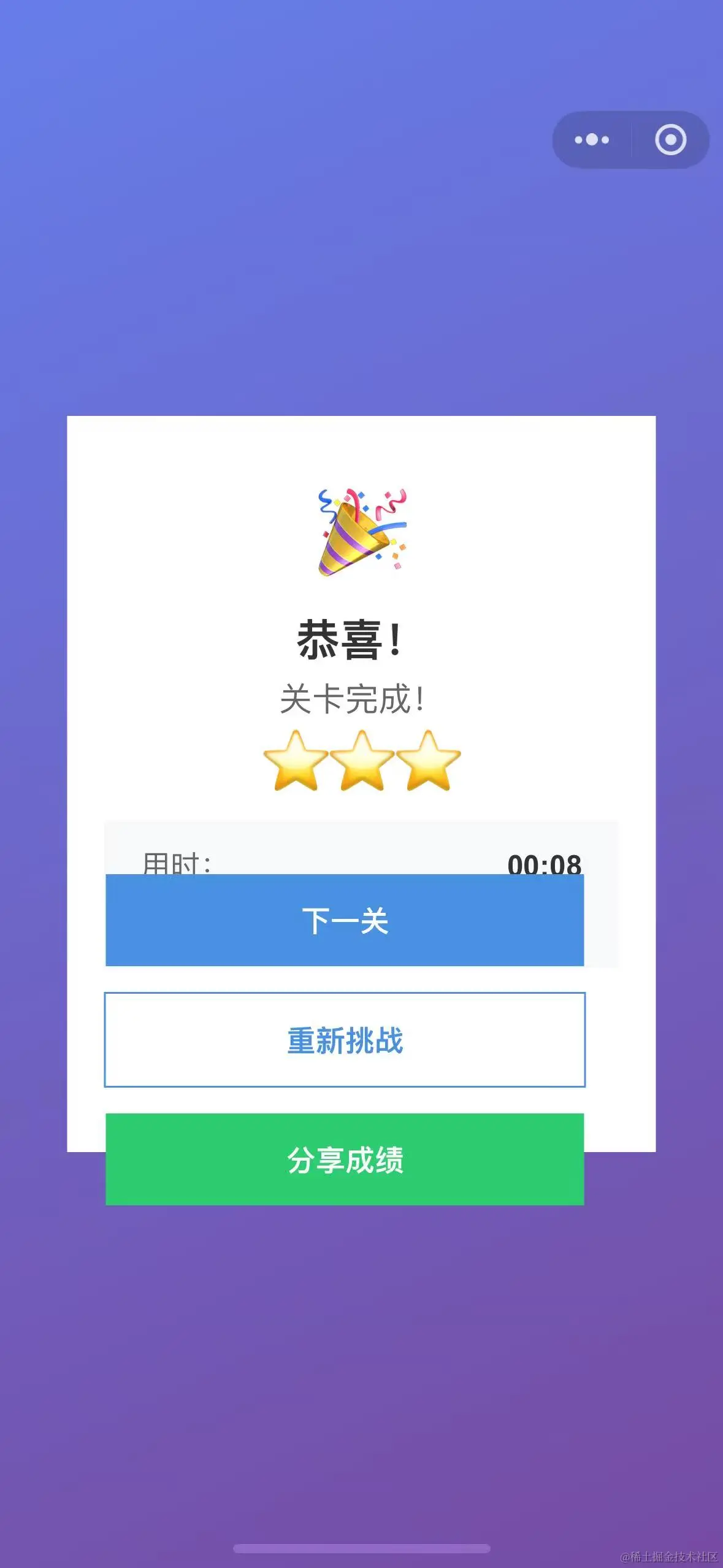 游戏界面中,将操作按钮和时间都放在顶部作为 HUD ,操作按钮放在 HUD 第二栏,HUD 上边距 20 避免状态栏遮挡; 关闭按钮改成黑色叉号