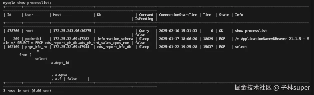 show processlist;