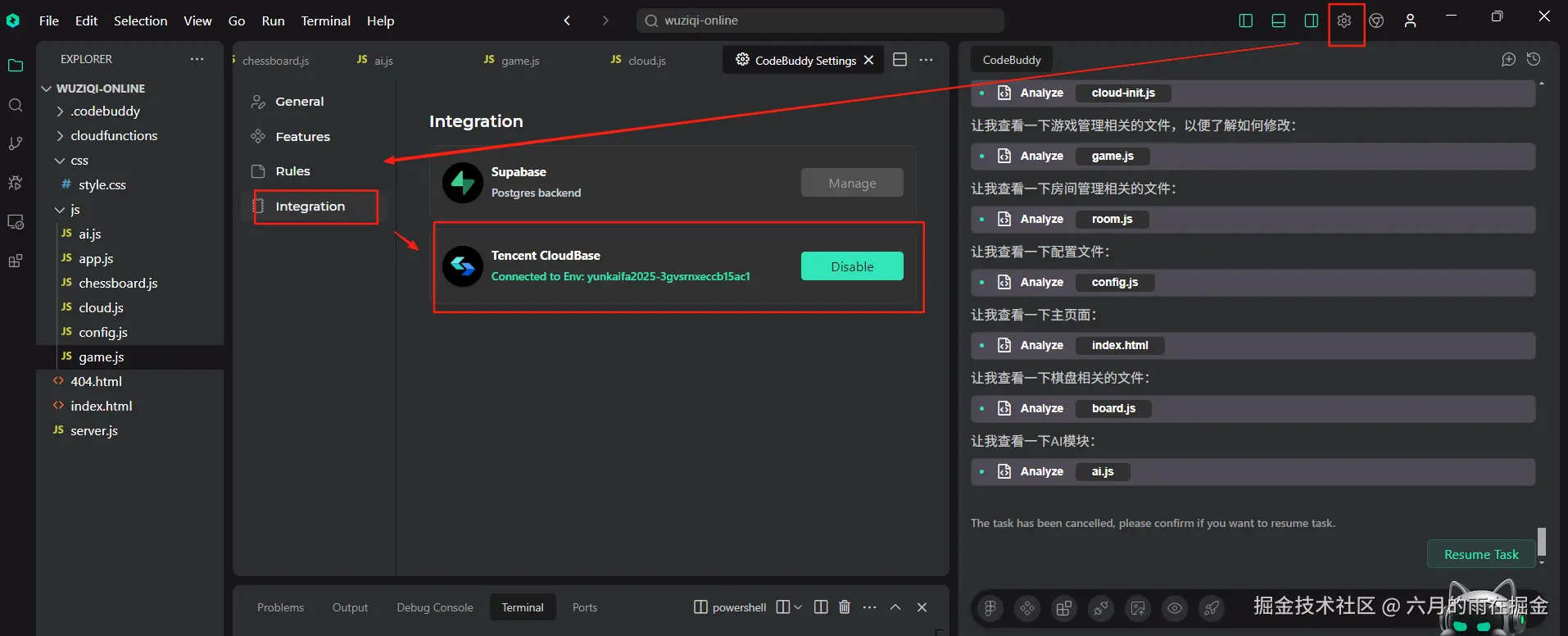 确认好腾讯云CloudBase 的状态后,我们就可以开发我们的五子棋在线小游戏了。