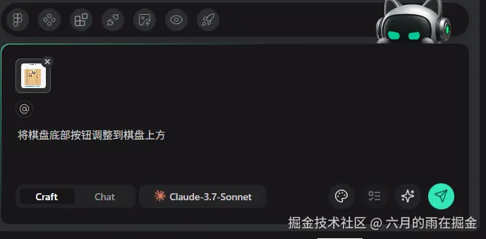 当然,你也可以通过文字描述的方式告诉 AI 来调整棋盘操作按钮的位置,但是个人建议还是通过截图+ Prompt 提示词的方式,效果更好。