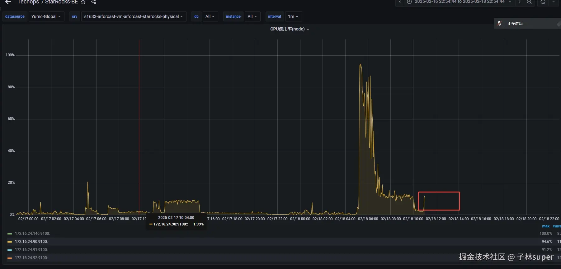 2.18日早上5点左右开始节点172.16.24.146的CPU开始飚满到100%