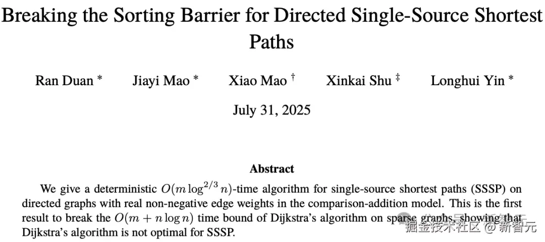 「【新智元导读】清华大学教授段然提出了一种最短路径新方法,击败了教科书中经典的 Dijkstra 算法。」