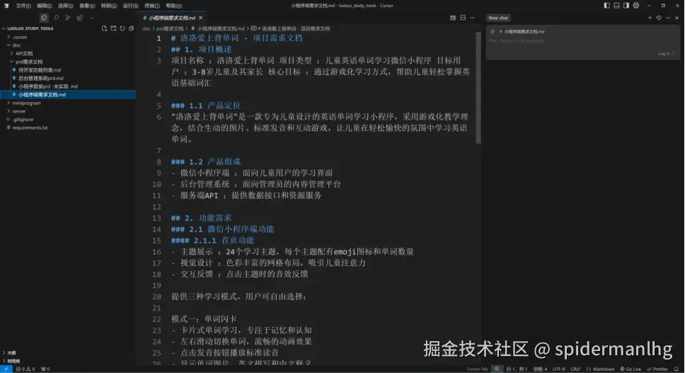 今年3月份,在B站上看到了各种“AI编程”的视频,都说普通人可以用AI编程来做自己的产品了。我跟着教程做了几个简单Demo后,我决定自己做一个能上线的产品。我有信心能做成功, 因为我比普通人强点,本身就是做产品的,而且我还自学过python和react的一些知识,可以写简单的小功能。想来想去,最后决定给我女儿做一个背单词的英语学习小程序“洛洛的学习工具”。我大概花费了3周的时间完成了开发,主要是前后台联调浪费的时间最多。