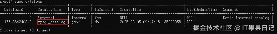以下是创建catalog的模板,其中driver_url指向的是/opt/apache-doris/be/jdbc_drivers和/opt/apache-doris/fe/jdbc_drivers两个目录,mysql-connector-java-8.0.19.jar必须和包名保持一致。