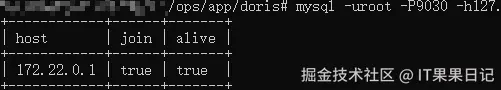 ## 检查 FE 状态,确定 Join 与 Alive 列均为 true