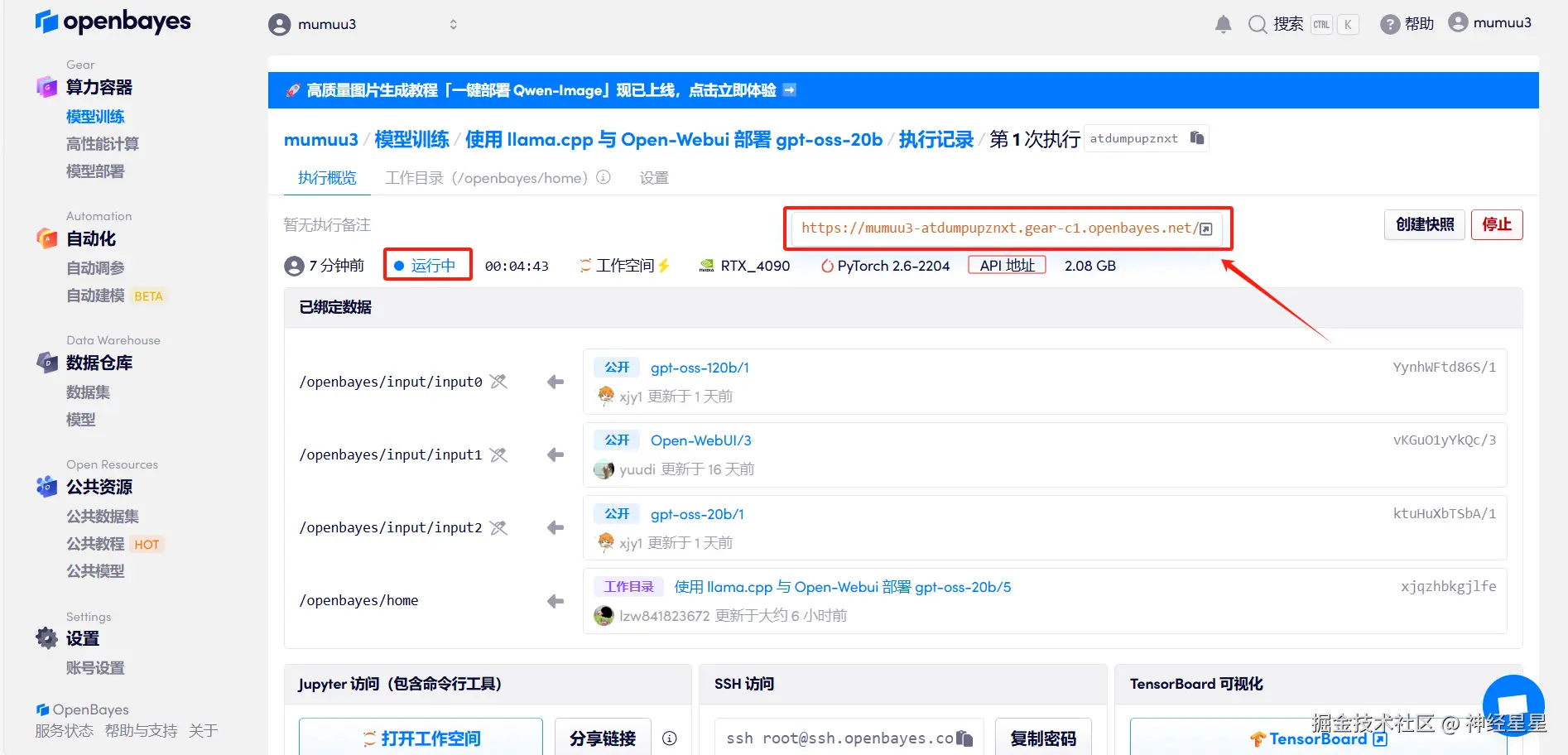 为了让大家能够更加流畅地体验 gpt-oss,HyperAI 超神经官网(hyper.ai)的「教程」板块现已上线了「Llama.cpp+open-webui 部署 Gpt-oss-20b」, 一键即可启动,基于单卡 NVIDIA RTX 4090 即可感受开源 SOTA 模型的强大能力。