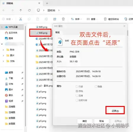 步骤2: 在回收站找到需要恢复的照片,双击选择后在文件信息页面上点击“还原”。