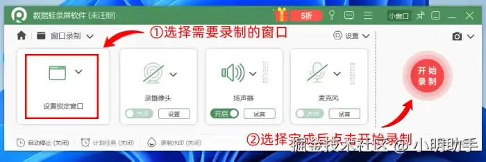 步骤②:在“录窗口”功能中选择需要录制的窗口,选择完成后点击“开始录制”按钮即可开始录制。