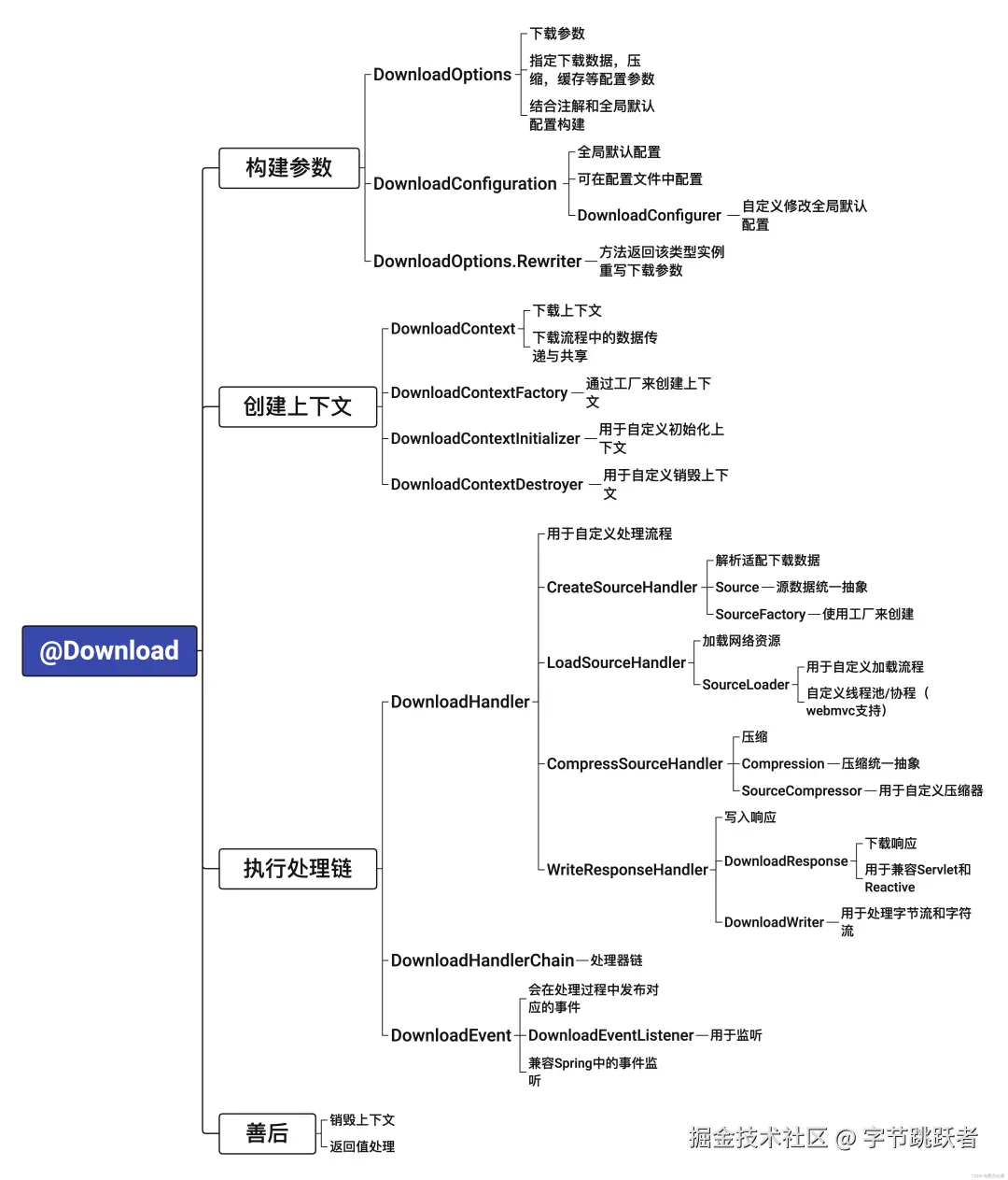 所以我想到使用事件的方式能更加灵活的扩展,并定义了DownloadEventPublisher用于发布事件和DownloadEventListener用于监听事件,而且支持了Spring的事件监听方式