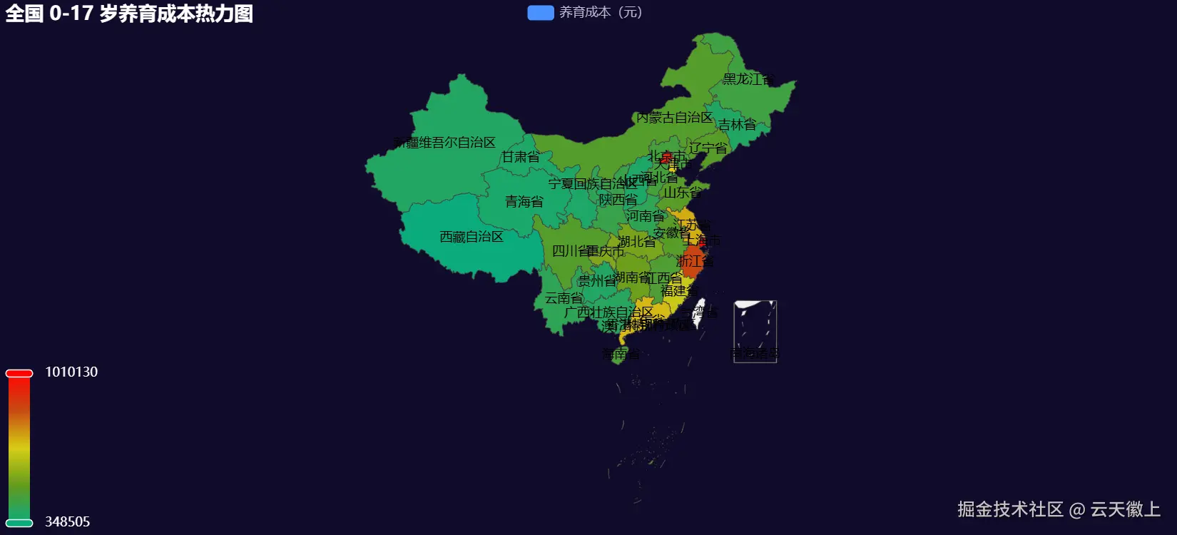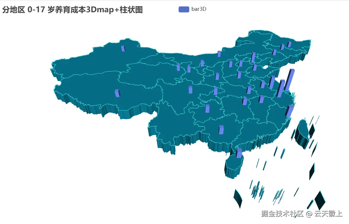 六、彩蛋(分地区 0-17 岁养育成本3Dmap+柱状图)