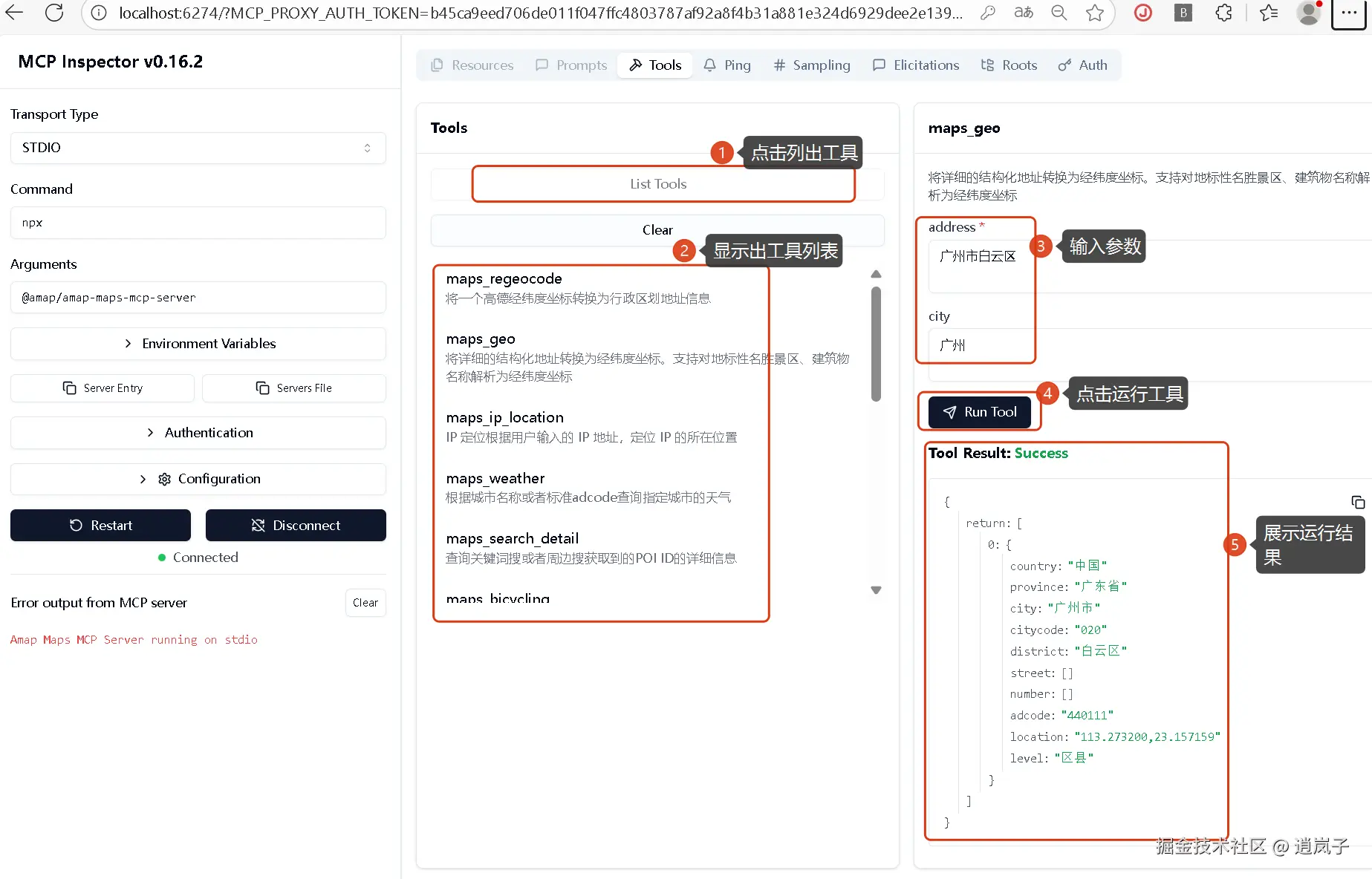 3. 直接在 MCP Inspector 页面调试 mcp server