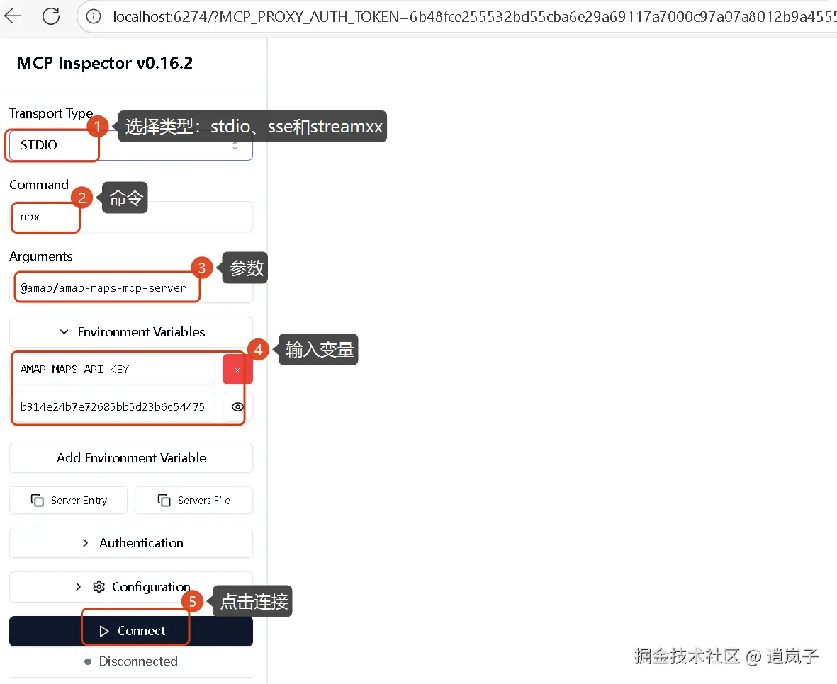inspector调试命令如下,会自动打开页面[http://localhost:6274/]
