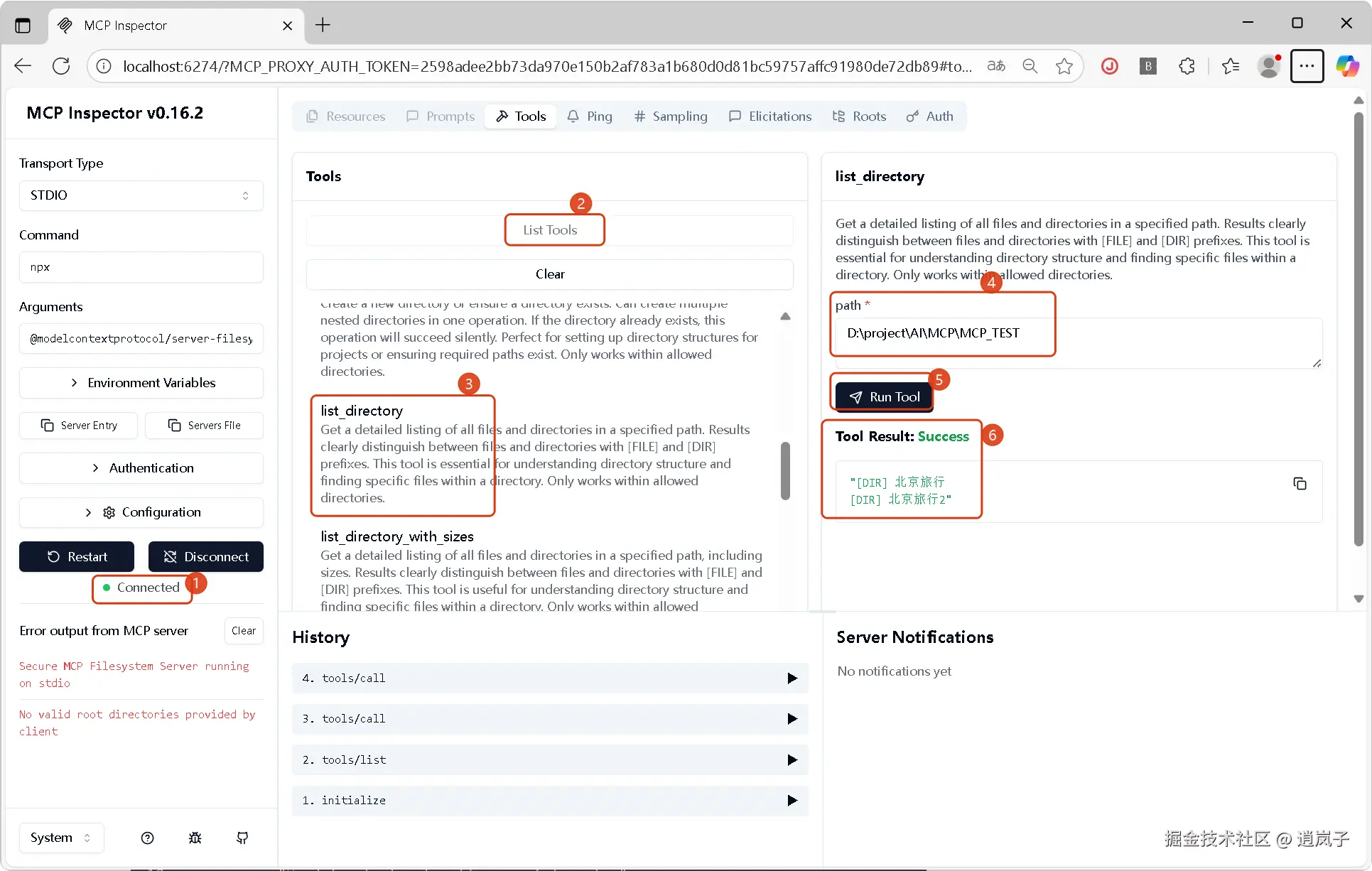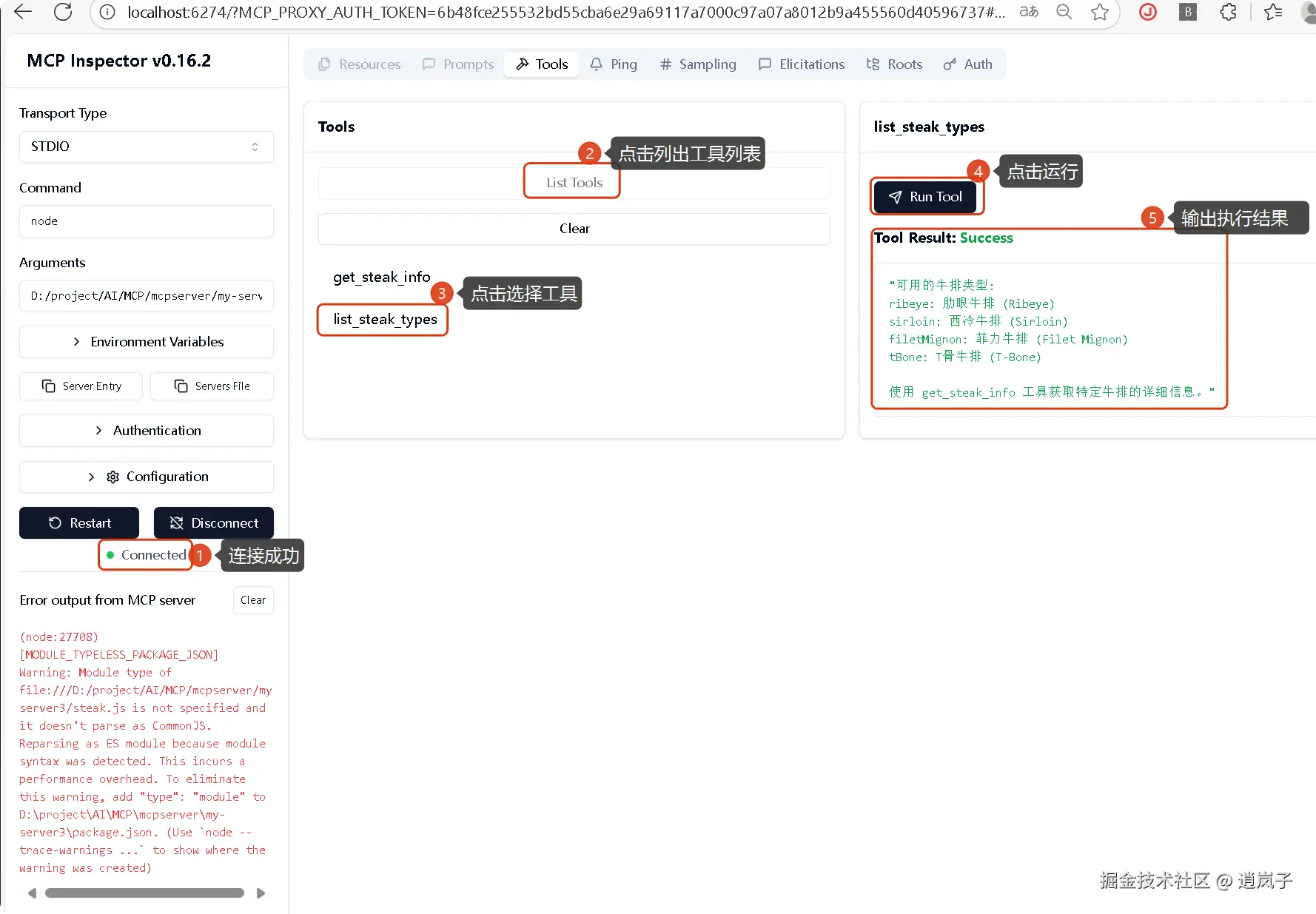 直接执行下面inspector 调试命令,会自动打开调试页面 [http://localhost:6274/]: