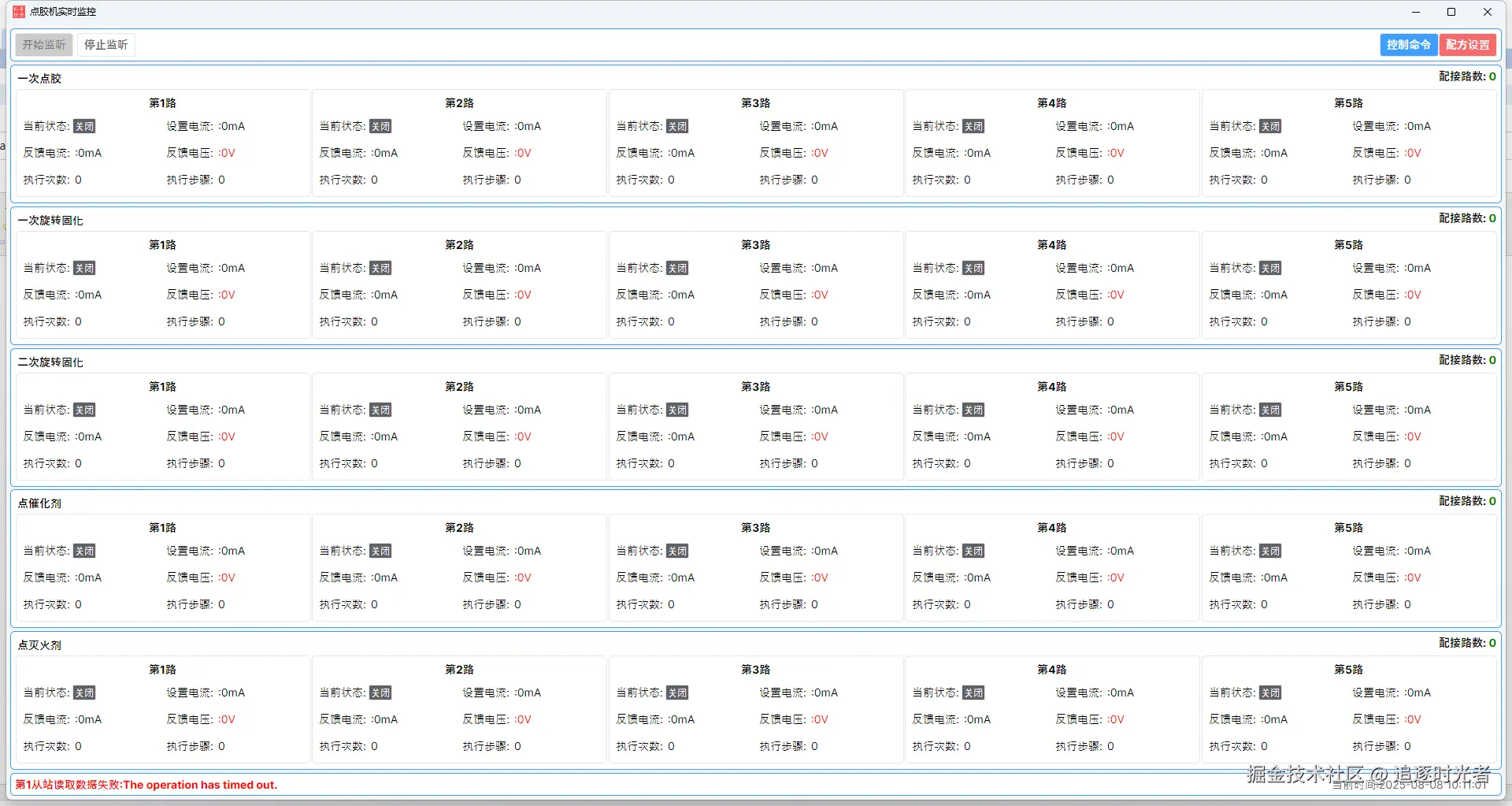 - 文章简介: 设计目标为与外购设备协同作业,完成传感器灌胶操作。涉及到的部分包括,一次点胶,一次旋转固化,点催化剂,点灭火剂这些步骤,上位机控制部分实现比较简单, 作为控制的中转核心,与各个控制执行器交互通信,实时监测各部分状态。主要实现 读取控制执行器状态信号,向控制执行器下发程控电源控制配方方案。上位机实现电源控制,与执行器之间,PC作为主站,电源控制执行器作为从站,两者之间通过modbus进行通信,物理接口为RS485。可跨平台运行在Linux系统,支持打包为deb安装包安装。