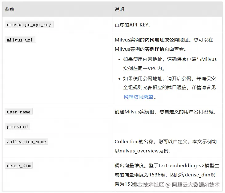 uri="http://c-xxxx.milvus.aliyuncs.com:19530", # Milvus实例的公网地址。