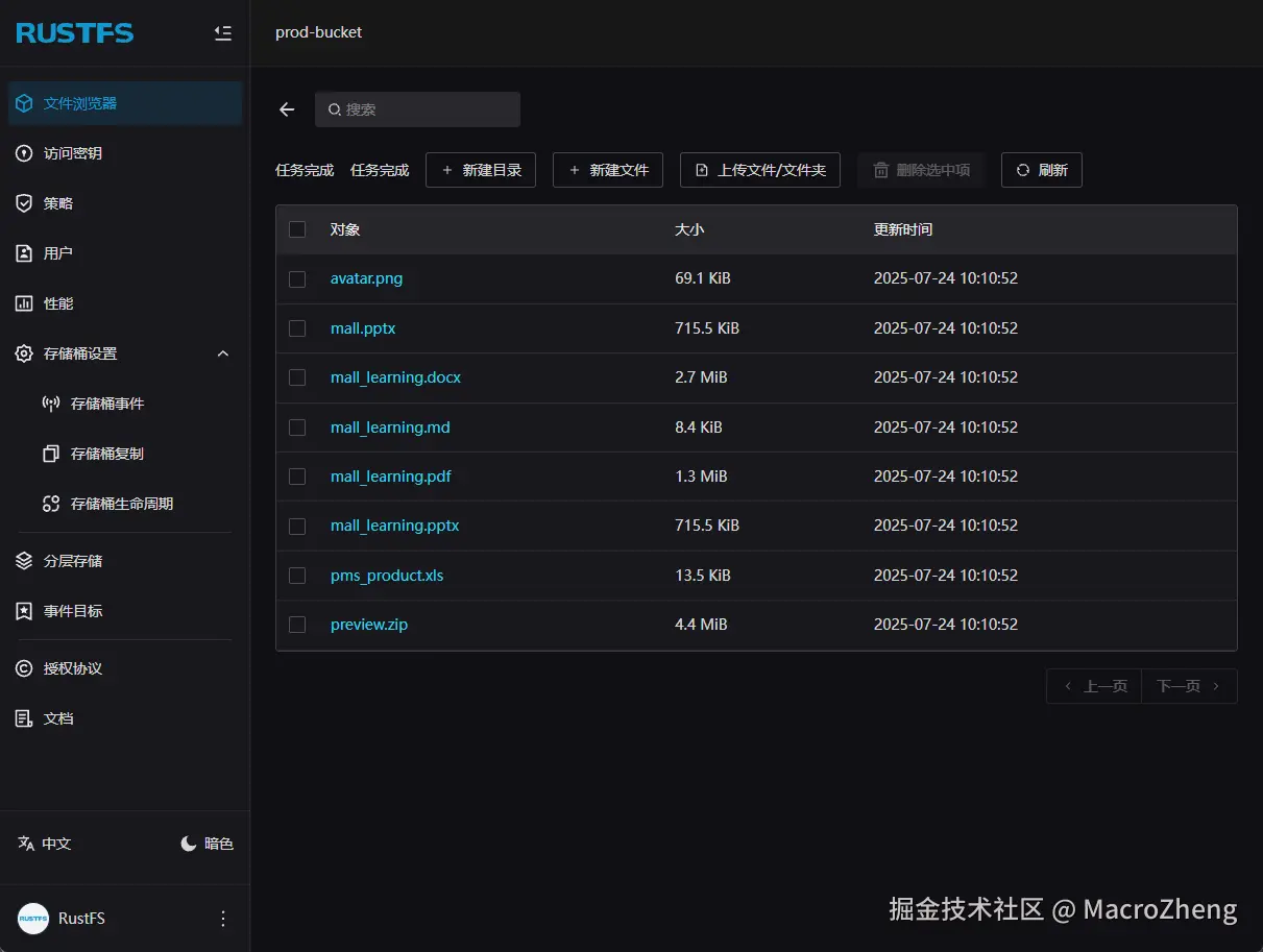 下面是RustFS使用过程中的效果图,功能还是很强大的!