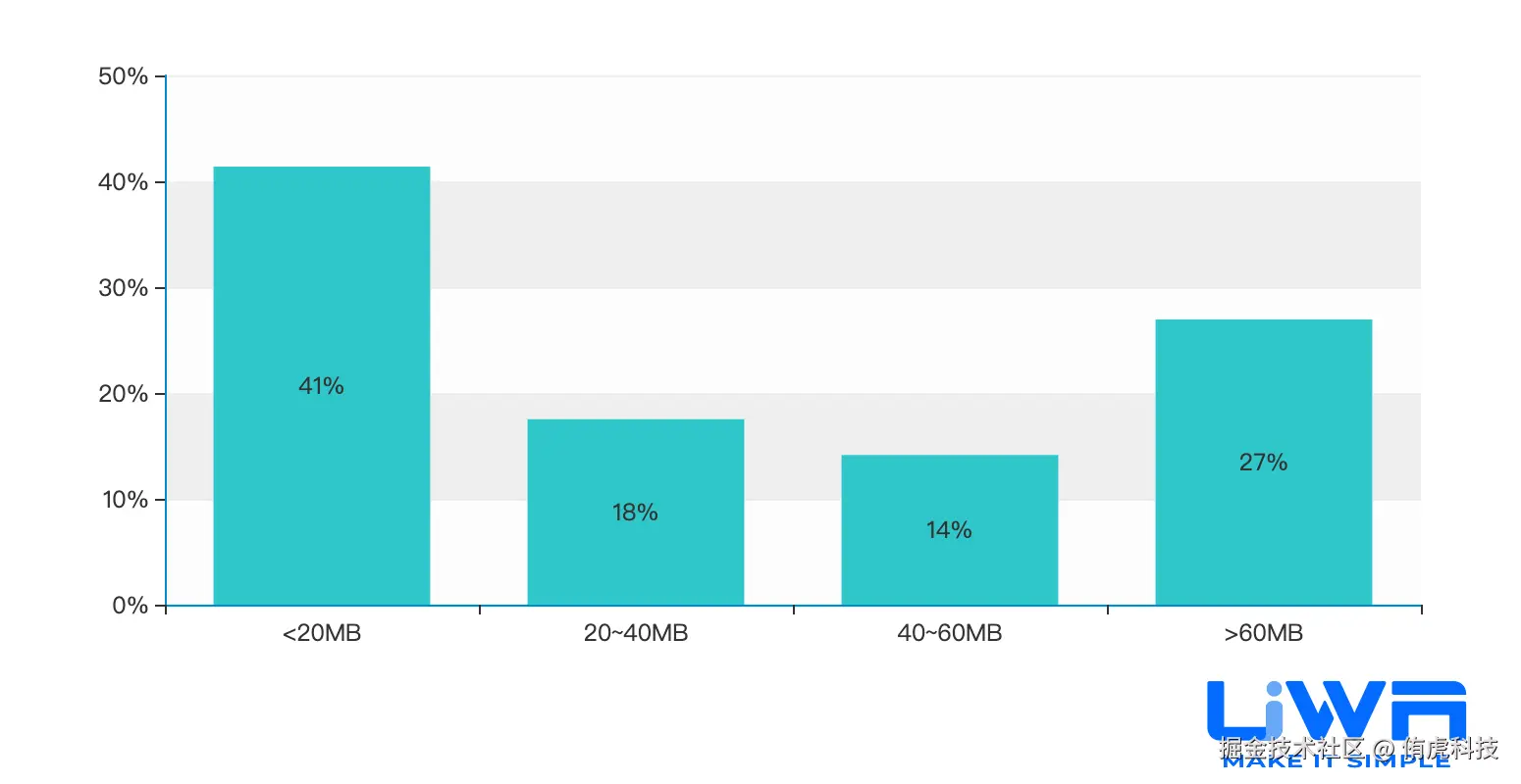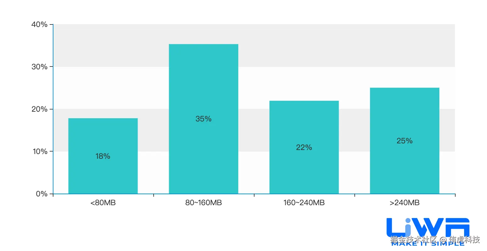 总体堆内存一直是项目的内存瓶颈,虽然在过去一年有所起伏,但有58%的项目堆内存大于100MB,大于200MB的项目也占24%。这主要是游戏的重度化所致,但另一方面也是研发团队对于Mono堆内存分配疏于管理所致,例如配置文件的序列化库使用不当等,建议研发团队在项目中前期选择序列化库时尽可能做更多的调研或者实验,来制定更合适合于自身项目的序列化配表解决方案。