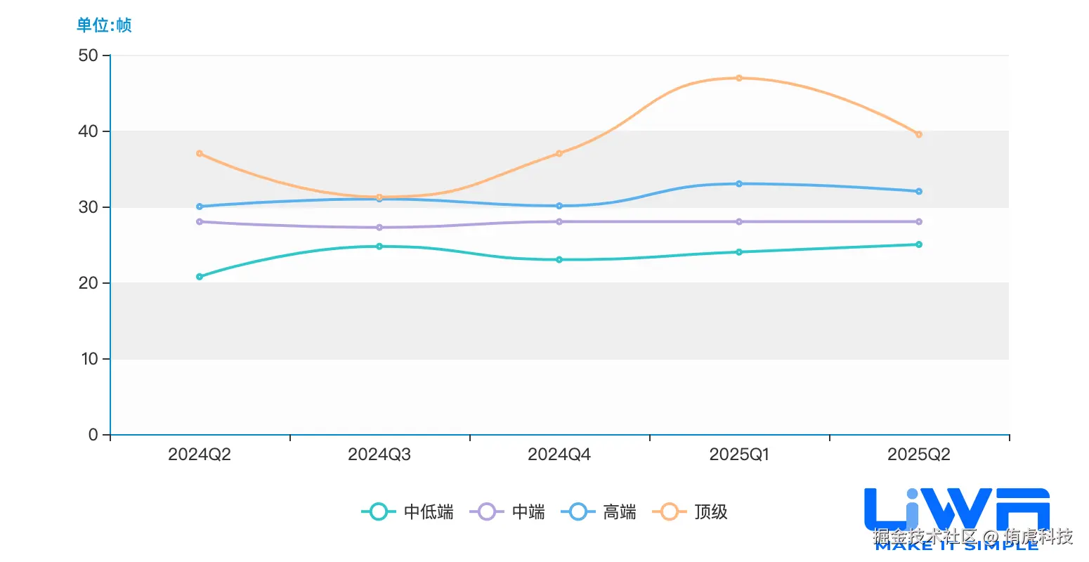 顶级设备的帧率(均值)在40帧左右;