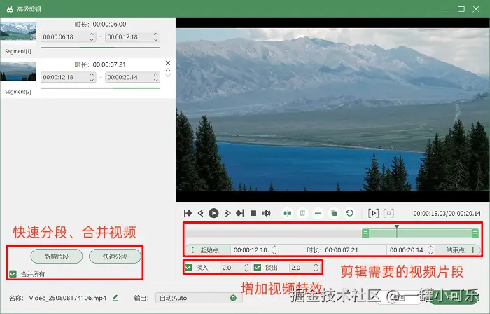 步骤3:录制结束,点击停止按钮,视频就会自动保存在电脑里了。我们可以在软件的录制历史中找到,还能直接用高级剪辑工具对视频进行删减、分段等操作,真的是非常方便。