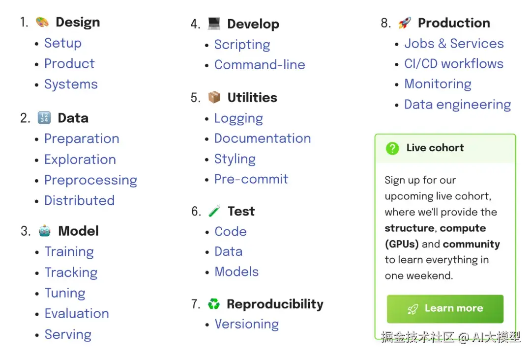 - 生产级实践:提供从模型训练到部署的完整工程化流程