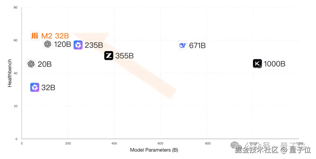 M2 在数学、指令遵循、写作等通用能力不降反增,各种基准都超过了 Qwen3-32B,这意味着它还可以被用于医疗以外的其他领域。