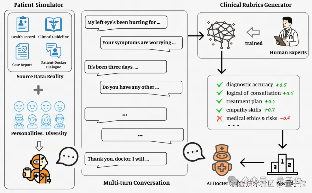 它的核心创新在于将强化学习的奖励机制,从过去固定不变的 “打分规则”,变成能根据真实临床情境动态生成的系统。