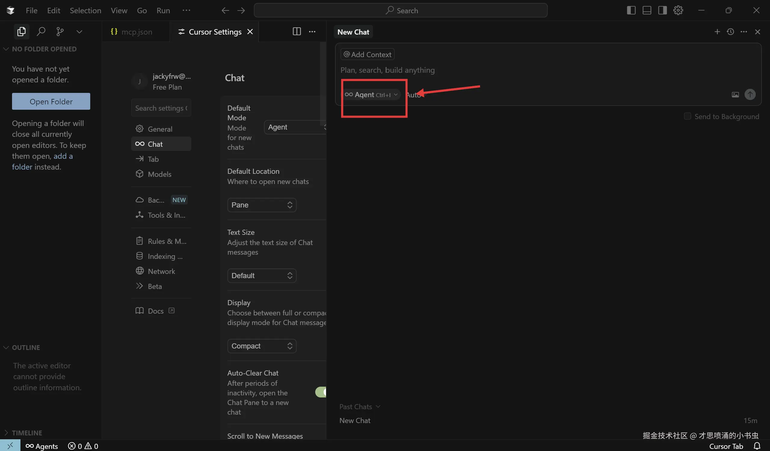 (5)按下 CTRL/CMD + L 快捷键,即可在编辑器右侧打开对话框。选择“Agent”模式,即可调用 DINO-X MCP。目前 Cursor IDE 支持直接上传图片,如要在对话中通过本地路径或 http 链接的方式来提供图片,需要严格参照 file:///path/to/your/image/directory 或者 https:// 的格式。