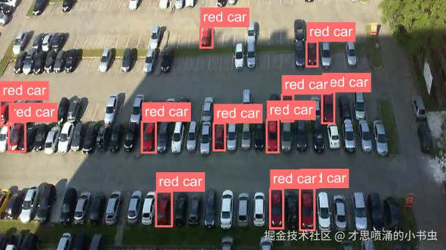 根据用户指定的特征(属性、位置等)检测并定位出目标对象,比如停车场内所有红色的车。