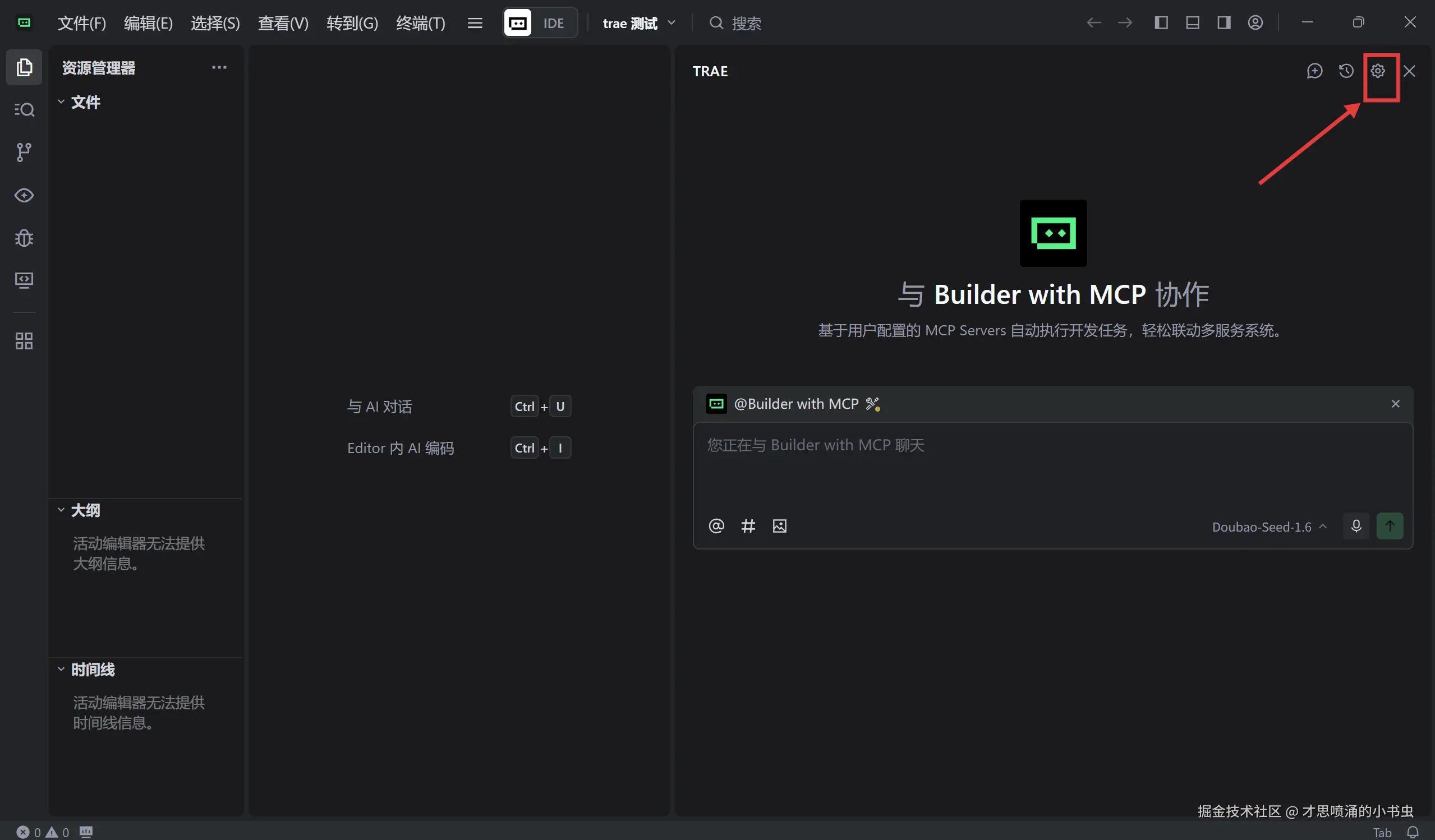 (1)进入 Trae IDE 页面,点击右上角的设置按钮,进入智能体设置界面。