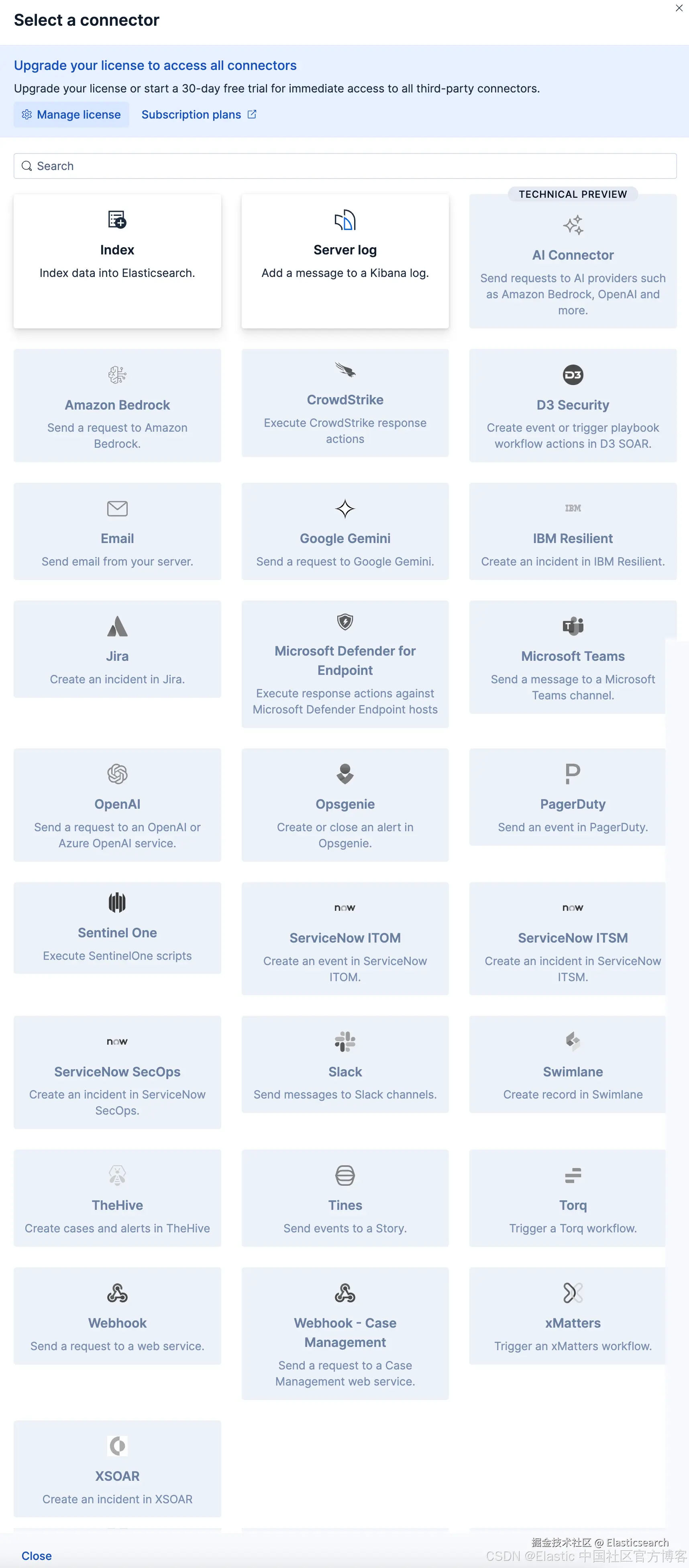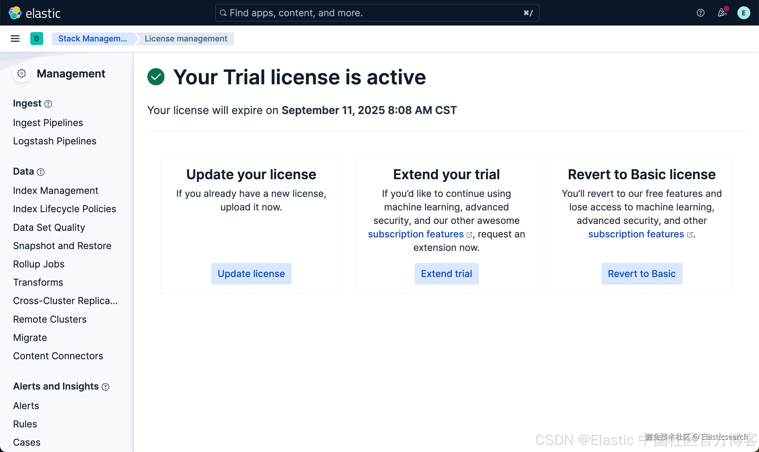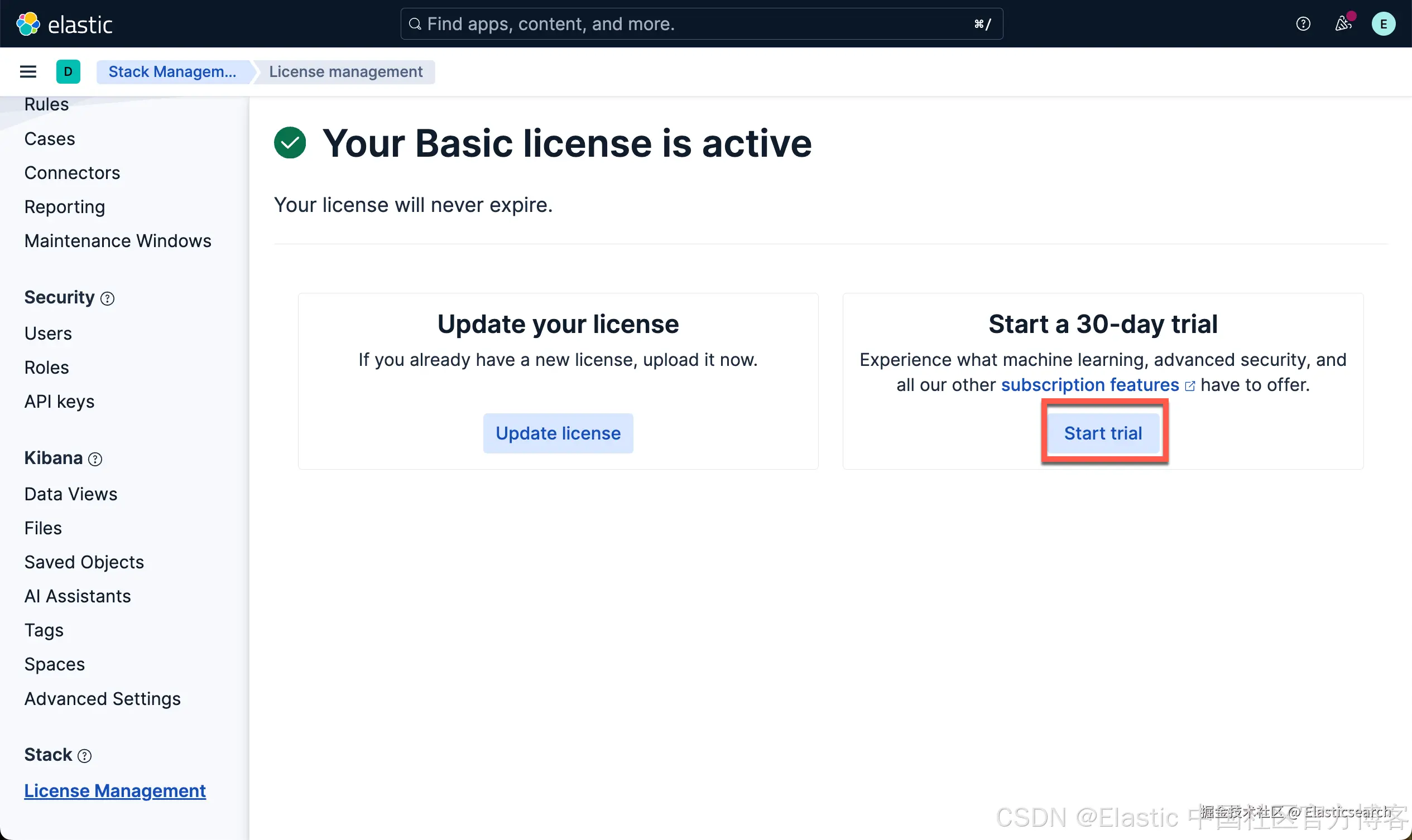 在默认的 basic 版权情况下,Elastic 只支持 index 及 server log: