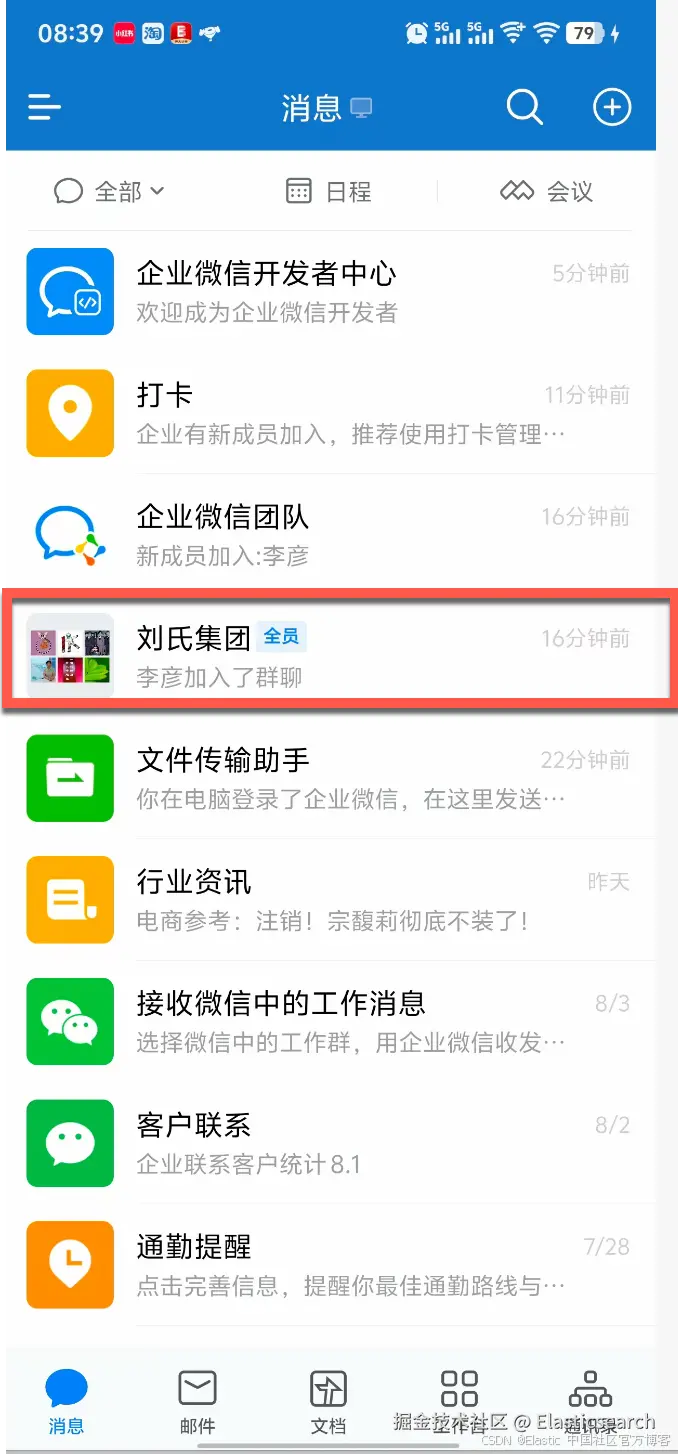我们检查企业微信,可以查看到如下的信息: