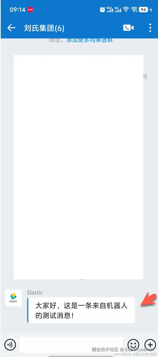 4. "content": "大家好,这是一条来自机器人的测试消息!"