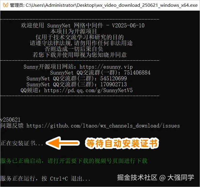 首次打开会自动安装证书,等待软件界面提示「服务已正确启动」就说明可以正常使用(请关闭你的呆狸软件)