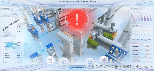 图扑 HT 支持将设备历史数据与实时运行数据进行比对分析,有效评估生产效率与设备性能,为生产流程的持续优化提供坚实的数据支撑。