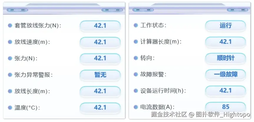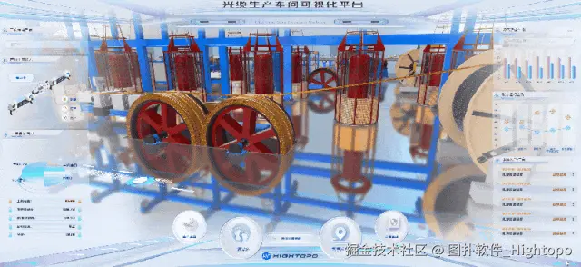 图扑 HT 支持高度定制化。通过连接设备传感器,实时采集主机电流、挤塑量、高低转速、牵引启动信号、计米数据等核心参数。数据经后台处理与分析后,通过可视化前端以直观图表呈现,帮助作业人员实时掌控设备与产线状态,提升生产效率和产品质量。