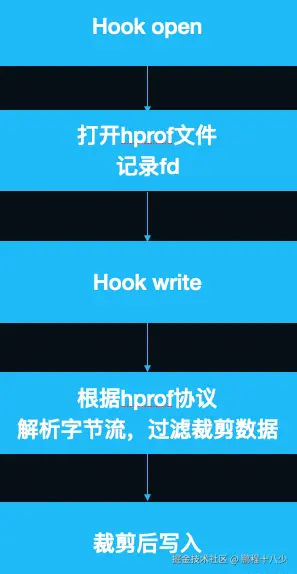 - 如果子进程返回,通过Debug.dumpHprofData(path)读取内存镜像信息,这个会比较耗时,执行结束就退出子进程;
