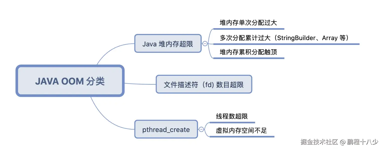 每个进程中,对线程数量上限是有严格定义的,如果超出了线程数上限,也会报OOM问题。