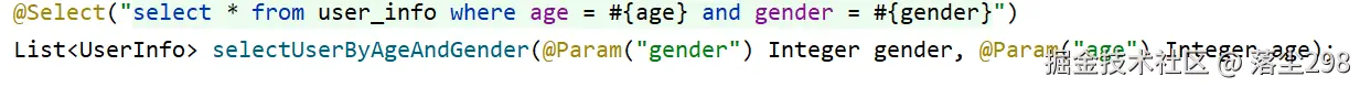 Mybatis plus 提供的方法可能不能满足一些其他需求,这是就可以自定义 sql,第一种实现方式还是之前 Mybatis 的写法,直接把 sql 语句写在注解里,或者是使用 XML 的方式