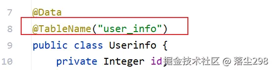那么就有一个问题,Mapper 中不写 sql 语句是怎么知道要操作哪张表的,其实就是继承的BaseMapper<UserInfo>中传入的泛型参数,会将 Java 中类的命名规范改为数据库中的命名规范,类中的属性也是按照规范映射到数据库中表的字段的,那么就会有一个问题,如果说类名或者属性名没有按照规范来定义,还能知道操作的是哪张表吗