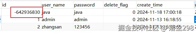 虽然说插入成功了,但是数据好像不太对,这里的 id 并没有按照自增的方式来增加,而且设置为了一个新的 id,原因就是没有指定数据库中的主键