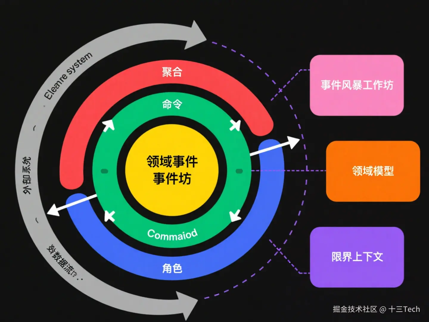 - 聚合 / 实体(黄色):承载事件的业务对象(如 “订单”“商品”);