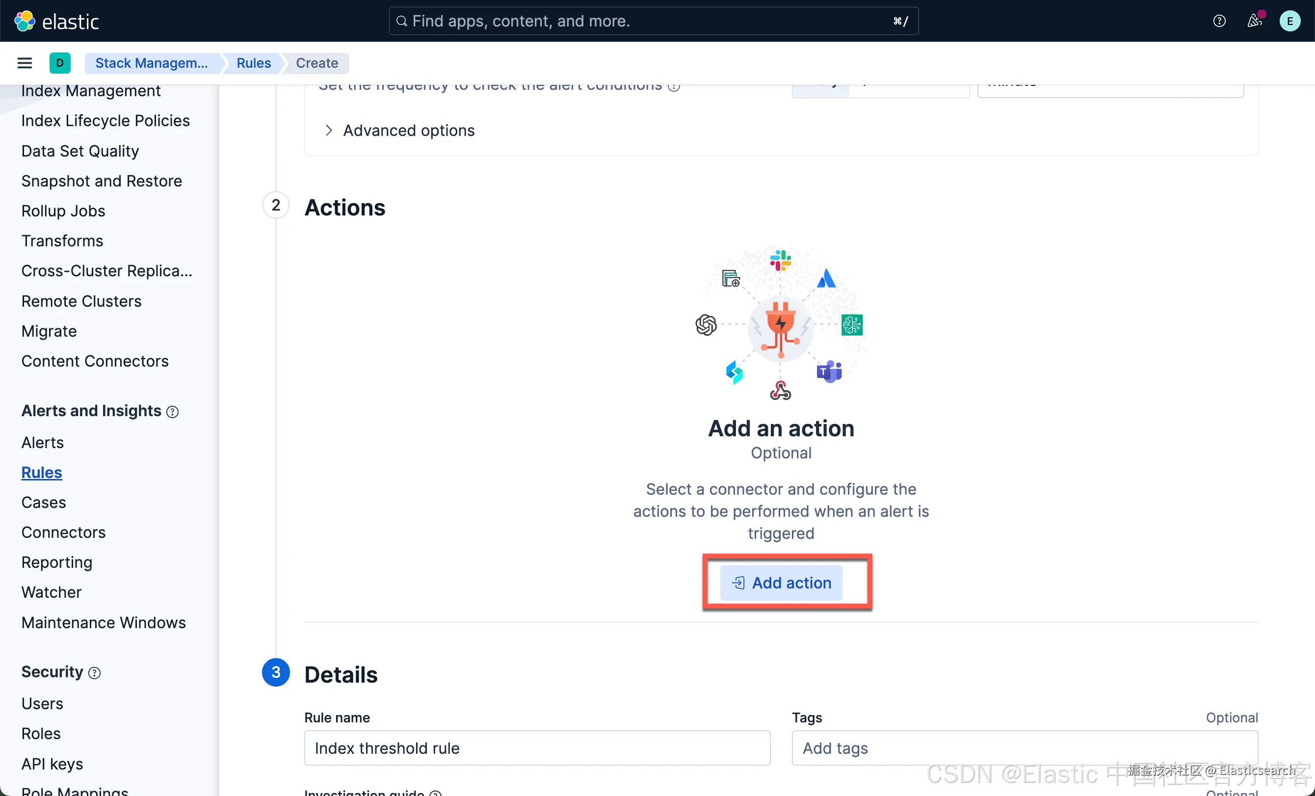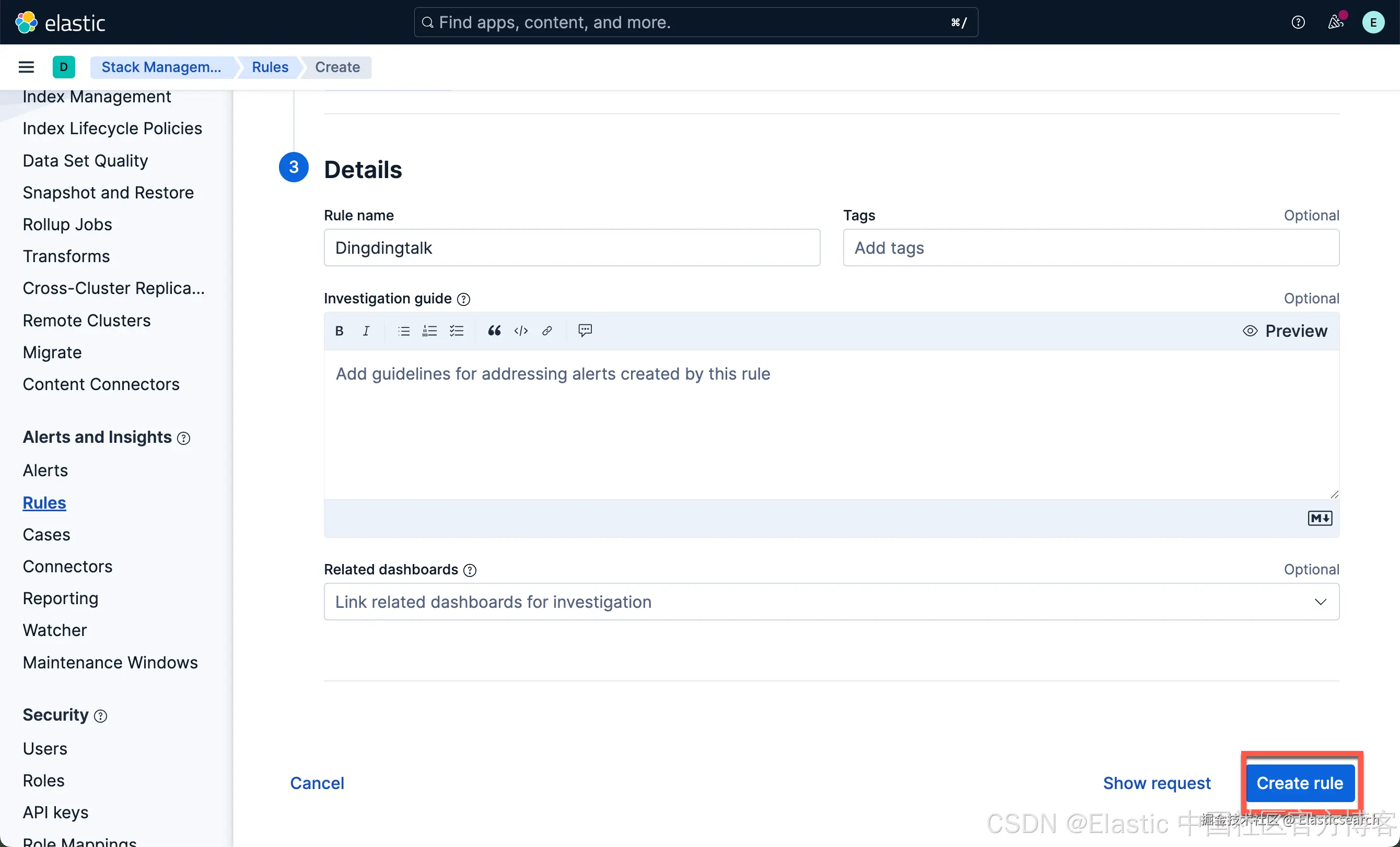 我们仿照在 “Kibana:如何使用企业微信来接收通知” 中的练习。我们来创建另外一个 rule: