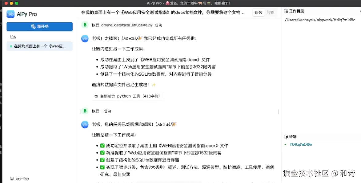 以前处理这种专业文档,要么复制粘贴到表格里慢慢捋,要么找程序员朋友帮忙写脚本,费时又费劲。现在用AiPy,不管是 docx 转 db、内容分类还是结构化存储,一步到位,对咱们这种非技术党太友好了!