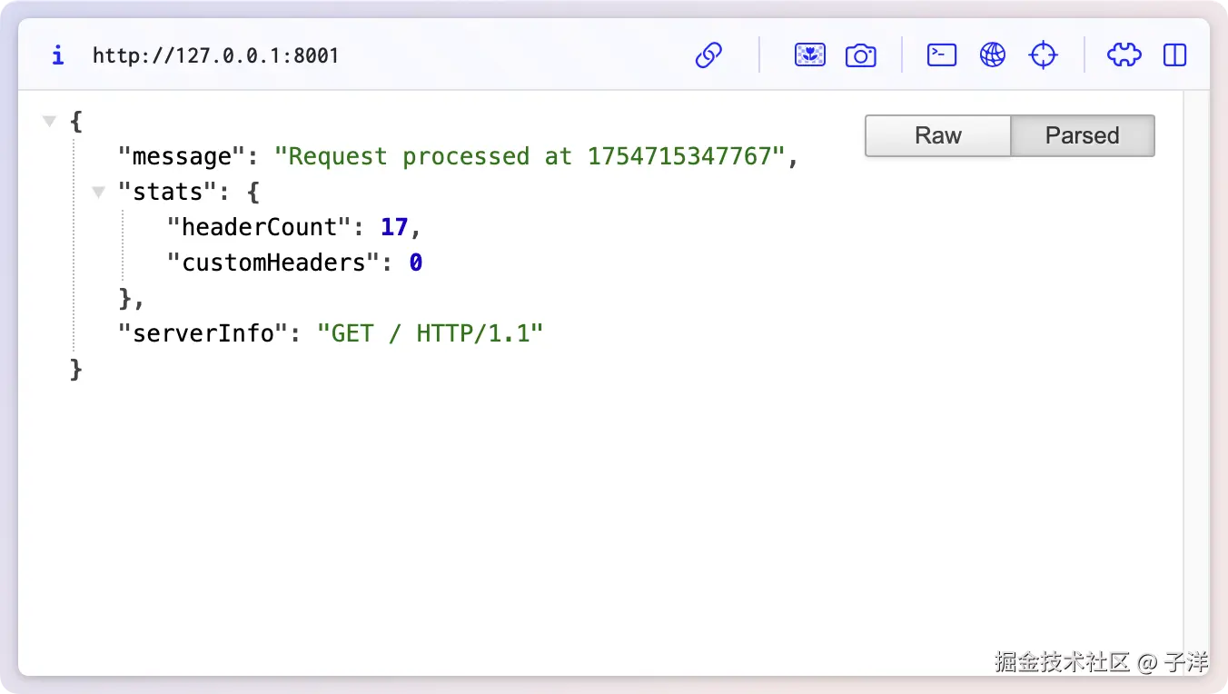 启动 Nginx 后访问 http://127.0.0.1:8001,返回 JSON 数据: