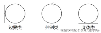 - 控制类:控制用例(系统用例)流,为实体分配职责(为完成系统用例,也会使用边界类)。